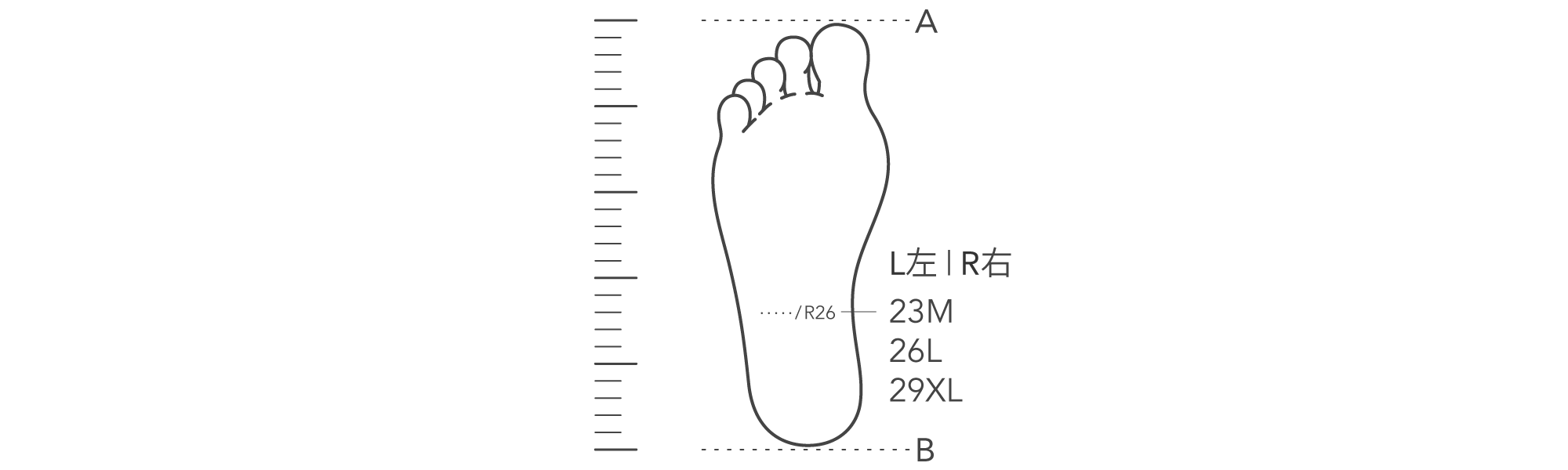 | 尺寸 | 腳掌長(腳趾至腳跟長度) |