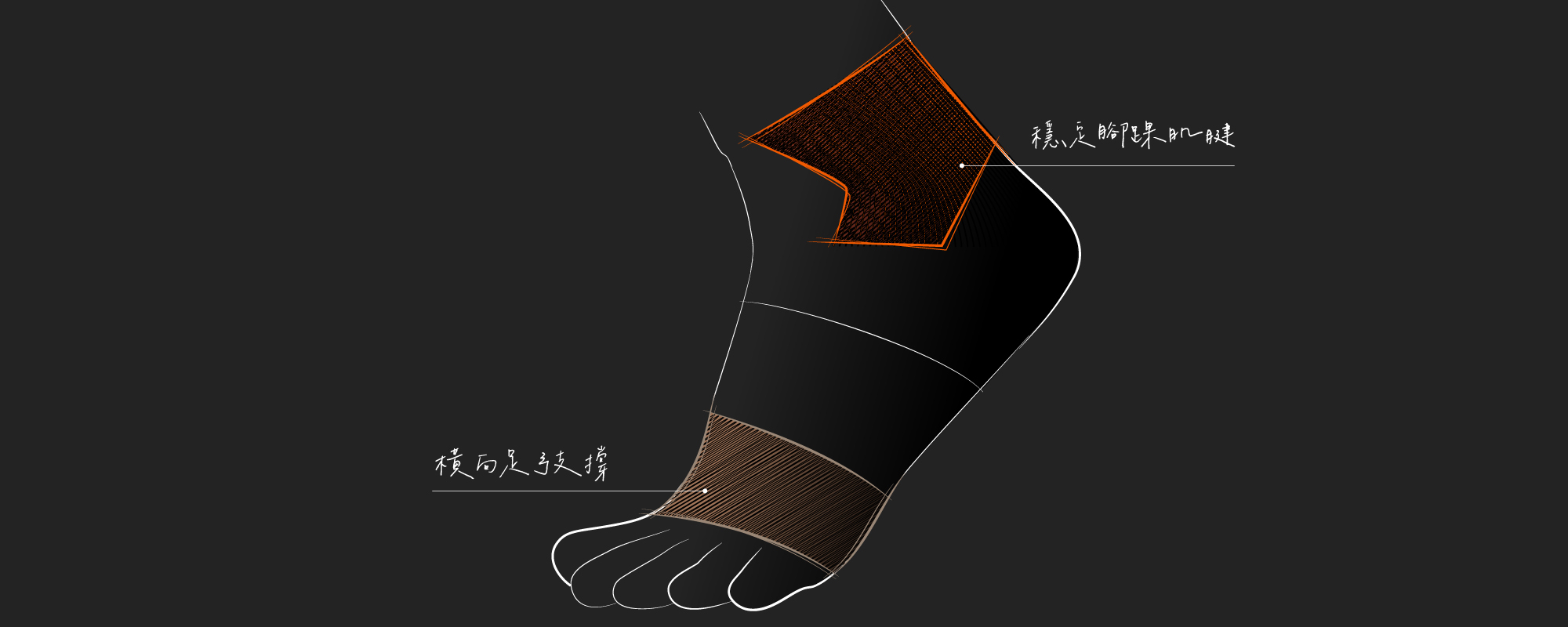 功能:足弓支撐 / 橫弓支撐 / 腳踝穩定 / 足跟防護 / 止滑功能 / 透氣快乾